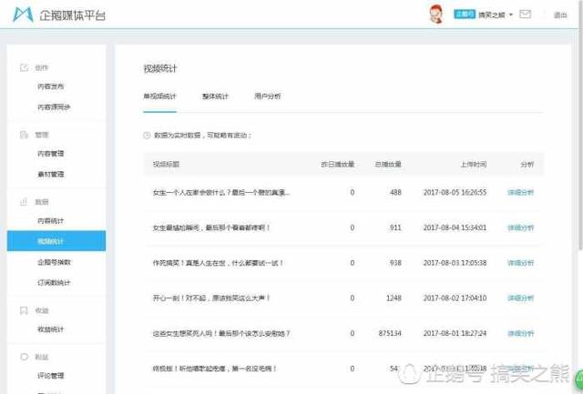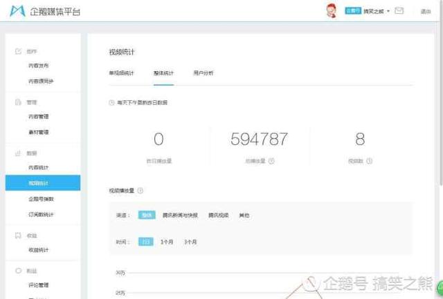 而我从开通企鹅号到现在总共是9天,而且我总共只发了8个视频/2篇文章,所写文章阅读量也不大,只有一个视频在我过新手时有20多W的阅读量,其他都不高。