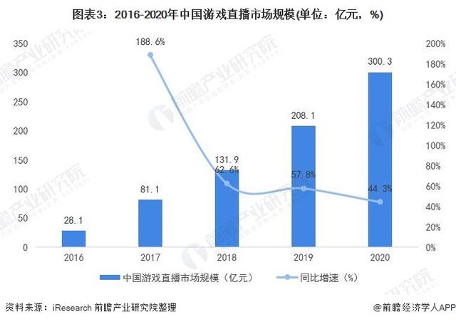 游戏直播作为网络直播的一大细分领域,其市场空间巨大,并且伴随着游戏直播与电竞的深度融合,游戏直播生态更加完善,游戏直播市场规模由2016年的28.1亿元大幅增长至2020年的300.3亿元,2016-2020年我国游戏直播市场规模年复合增长率高达88.3%。
