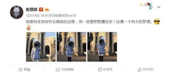 前一段时间,赵丽颖还曾发文,当时她不好意思的挡住自己的脸站在清华大学,她说:“如果将来我有机会再站在这里,我一定要把脸露出来!这是一个伟大的梦想。”