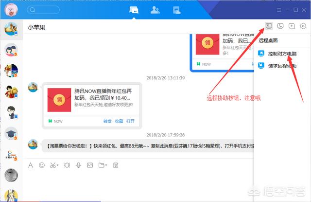 如果你是协助方,选择控制对方电脑即可,如果你是求助方,则选择请求远程协助