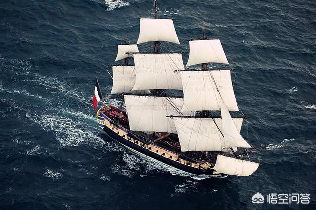 复原的法国赫敏号风帆巡洋舰,1780年年轻的拉斐特侯爵说服法王路易十四,乘坐赫敏号巡洋舰,带领5500名法军和5艘战舰,驰援美国,并与华盛顿会师。