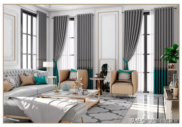 2.家具,装饰吊灯,柜体,窗帘为过度色。