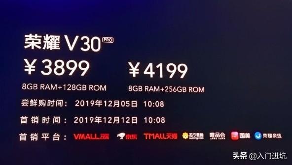 而且相比较价格来说8G+128G起步的荣耀V30 PRO价格方面也不高,也才3899元。