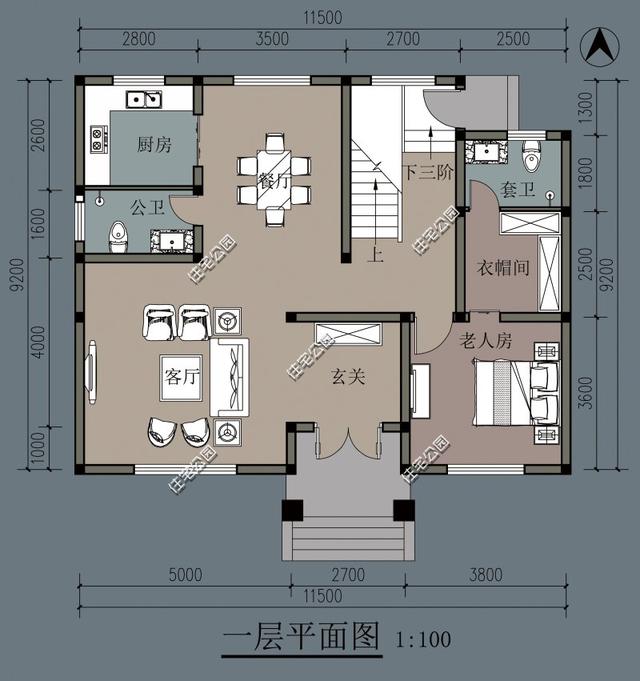 细腻的线条设计与暖色斜瓦,为别墅镀上一层温柔的粉色调。贯穿两层的门斗设计,拉伸建筑挺拔感。精致的雕花,提升了立面高级感。整体颜值还是非常高的。按照业主要求,别墅设计成坐南朝北型。