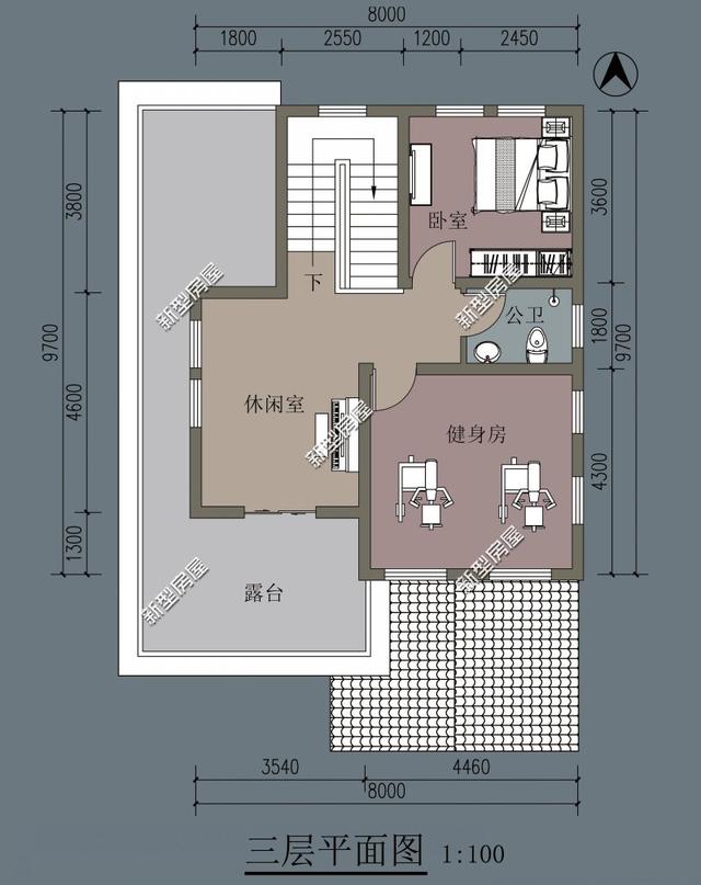 第3套:健身房+大露台,9×11米小面宽温馨小墅,主体预算40万