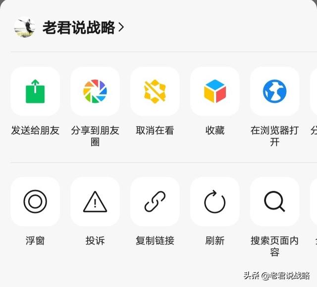 分享功能在此前包含在公众号文章的右上角的三点标里。三点标是一个综合键包含了很多功能,此时分享功能、搜藏功能、复制链接、以及投诉功能等。此次微信公众号把分享功能键单独提出放在醒目的留言区上方目的应该很明显,就是鼓励和提醒读者去主动分享文章,扩大文章的阅读量。当然前提是读者通过阅读对文章有了认同度。