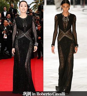 巩俐身着Roberto Cavalli 2014春夏礼服,透视的蕾丝设计是今年的大热元素呢~~整体感觉符合巩俐一贯的形象。