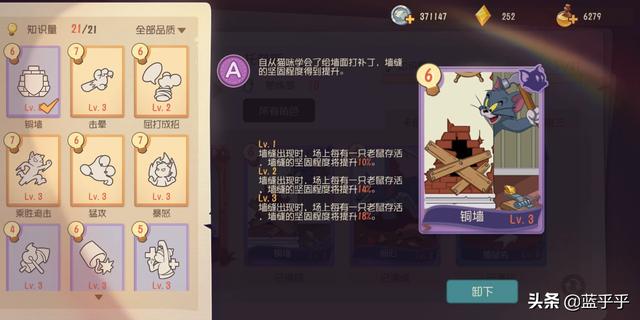 托普斯是在双重猫格加强后,知识卡铜墙增强后摸到T1门槛的猫咪。铜墙知识卡现在是每在场1只老鼠增加墙缝的坚固度10%/14%/18%。