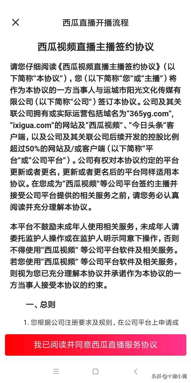 详细点说:我这边主要和你说说,西瓜视频怎么直播,其实很简单,打开西瓜视频软件,在“我的”里面有个“西瓜服务”,西瓜服务分类下面有个“我要直播”,点击“我要直播”,页面就会跳转到“西瓜主播直播签约协议”,阅读完以后,点击“已阅读并同意西瓜直播协议”,页面就会跳转到下一页,恭喜你成为西瓜主播,有两种直播方式,一种是手机开播,一种是电脑开播,选择你想要的开播方式,如果是手机可以直接开播,如果是电脑,那需要根据提示在电脑上下载西瓜直播伴侣。根据你想要直播的游戏,选择对应的游戏类目,设置好标题和封面,点击开始直播,就可以了哦。