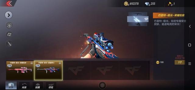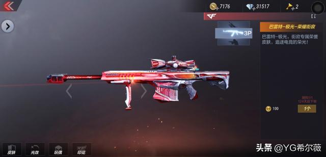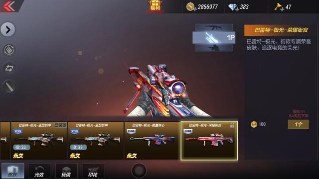 第二款,极光的街寂皮肤,这个皮肤是赏金令专属的道具,只有赏金令达到350级,而且凑够100个赛事赏金币才可以兑换。