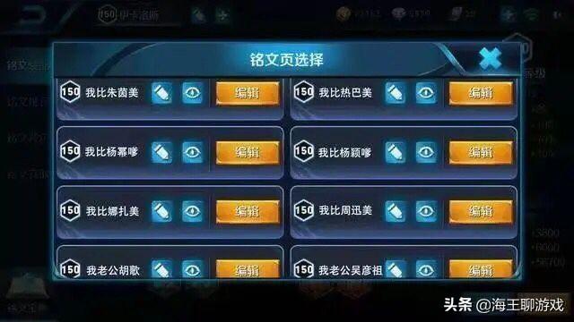 我们可以从图片里面看到,这位女玩家已经自恋的不行了,因为他的每一个铭文页的名字都改变了,而且把这些名字全部改成了一些和明星有关的话,不过你认真读的话,会感觉到这也太自恋了,还说自己比热巴美,比杨颖美,不知道这个女玩家到底长的什么样,竟然可以这样的自恋。