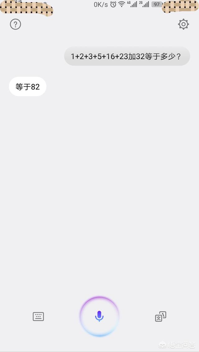 中间键即可自动打开语音识别功能,打开之后对着手机说话即可,手机接收指令后,能很快的根据指令做出功能。抖音上很火的那个自动计算的功能在华为的语音识别功能上也能实现,如下图