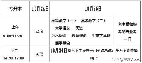 考试时间及科目