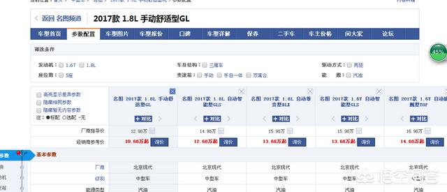 北京现代名图最低配为2017款 1.8L 手动舒适型