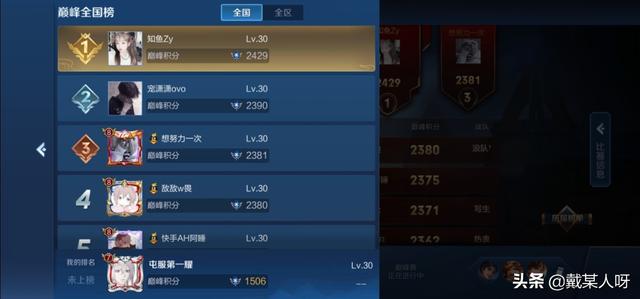 全区排名只能看到本区第一名,图片上大家可以看到,全国排名则是能看到全国的排名,虽然不分区,但分系统,安卓的只能看到安卓的全国排名,iOS系统自然也只能看到iOS系统的排名