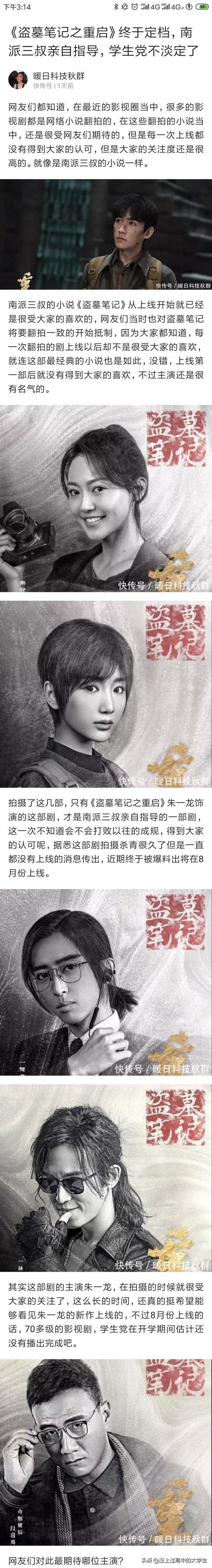 《盗墓笔记重启》,讲的是盗墓笔记完结10年后的故事,张起灵从青铜门出来,铁三角在福建的雨村隐居,之后发生的故事。这部的版权在三叔手里,所以电视剧也是三叔一手监制的,选角和质量都有保证,值得期待。