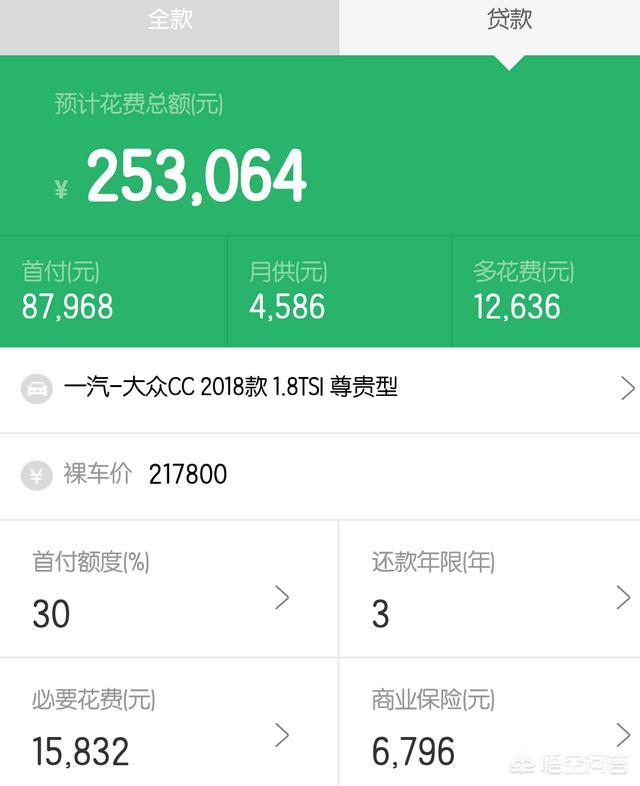 题主所说的大众CC 1.8T车主 不知道是尊贵型还是豪华型,每个地方的优惠幅度不一样所以每个地方办下来的价格不一样,除了车型不一样之外其他的算费方式是一样的,本次答主就以2018款 1.8TSI 豪华型 报价:26.88万元的给你做个预算