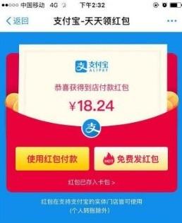 使用,次红包是线下支付红包,只有线下支付可以使用。不过现在超市,便利店,早餐店,就连买菜的都用支付宝收款,所以使用不愁。线下付款的时候,红包会自动抵扣。