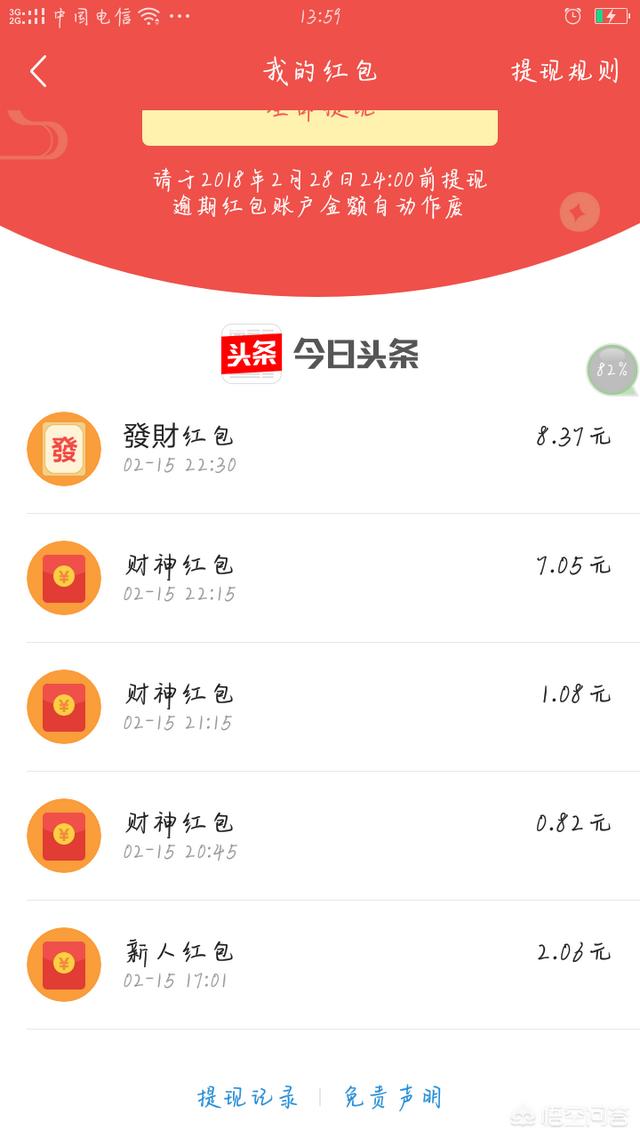 首先谢谢头条今年的红包比马云的还大气,十二生肖每人都得8.37元,还有每天抽奖金有大有小。只要绑定银行卡就可以提现。
