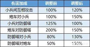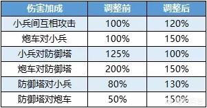 小兵增强防御塔也发生变动,防御塔伤害大幅提升,连续攻击伤害加成提升10%,连续攻击伤害上限提高100%,同时防御塔的攻击范围也提高不少,防御塔变的更伤了,同时小兵与防御塔之前的伤害数据也发生了调整。