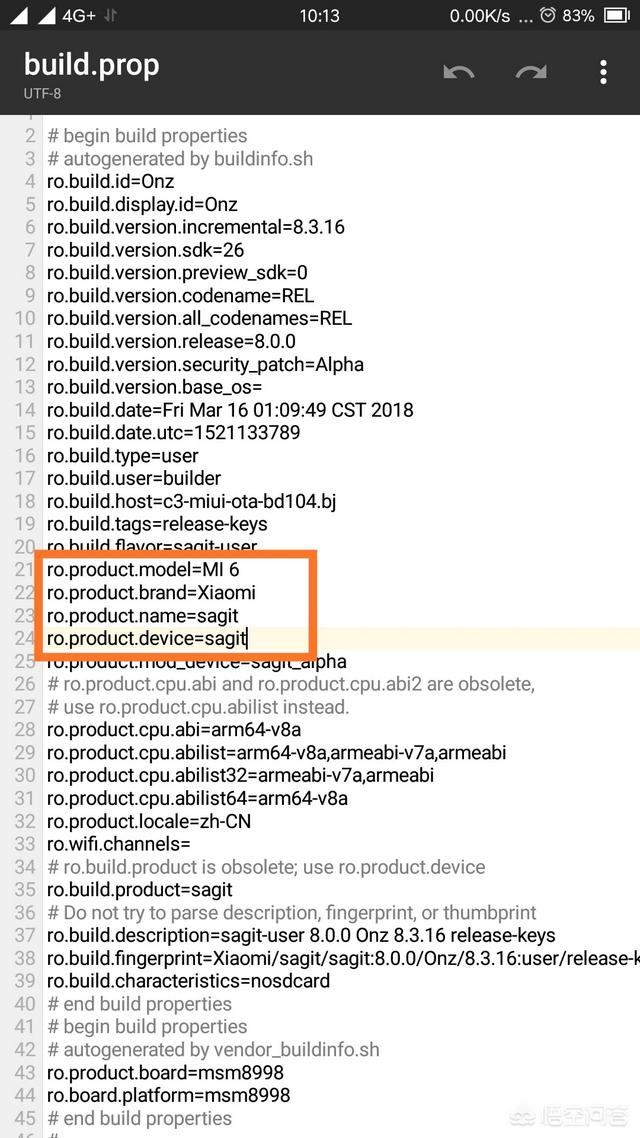 另外通过build.prop修改代码之后也只是让一些软件识别为小米6。