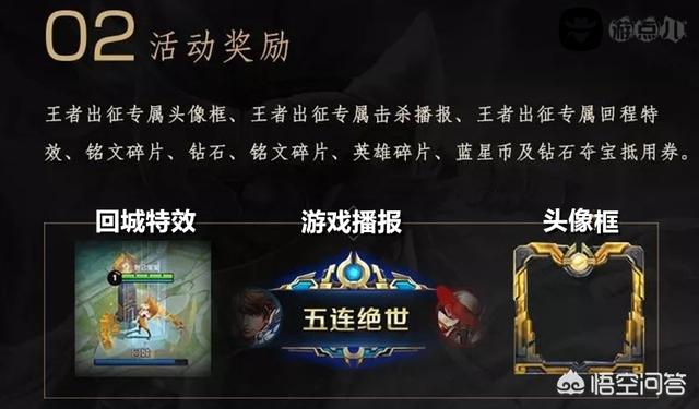 活动奖励方面也还算丰富,首先是对应局内表现三件套,分别是王者出征专属击杀播报、王者出征专属头像框以及王者出征专属回城特效,效果看起来还是不错的,除此之外,还会有一些游戏道具,主要的有英雄碎片和钻石夺宝抵用券等。