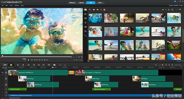 第三个是会声会影,其实会声会影的功能跟快剪辑差不多,操作起来也是比较简单的,如果说一般的软件操作基本上它的功能也就够用了,大部分人也都愿意用会声会影来操作剪辑视频。
