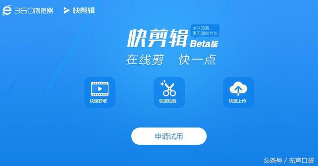 他的最大的优点就是他没有片头,就是不给你它自己的片头,而且虽然功能不多,但是简单的来用一下还是可以的,所以我放在第一个来推荐。这个软件是360安全卫士出品,为用户提供全面的视频剪辑服务,快剪辑可以将编辑完的视频直接发送到头条,爱奇艺等一些视频网站。永久免费,相比其他视频制作软件剪辑视频更加快速高效,剪辑完成就可以发布上传,非常方便,录制完成后,还可以添加多种特效效果。
