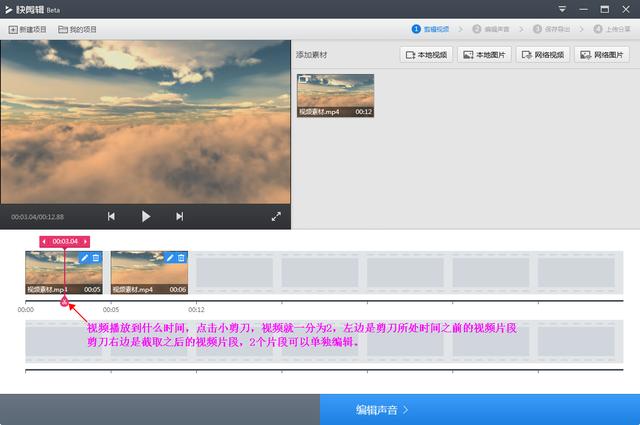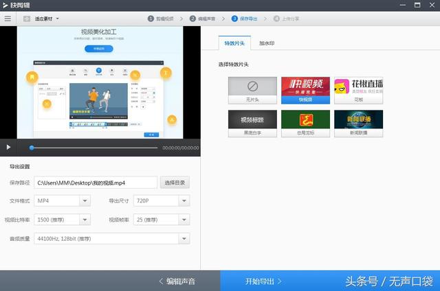 快剪辑他的最大的优点就是他没有片头,就是不给你它自己的片头,而且虽然功能不多,但是简单的来用一下还是可以的,所以我放在第一个来推荐。