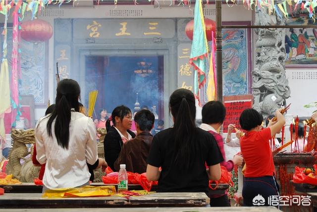 可以利用在古寺进香的人群或香烛火或供品作为前景,有太平盛世香火鼎盛的感觉。