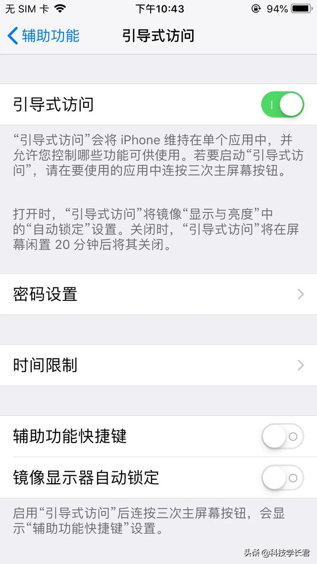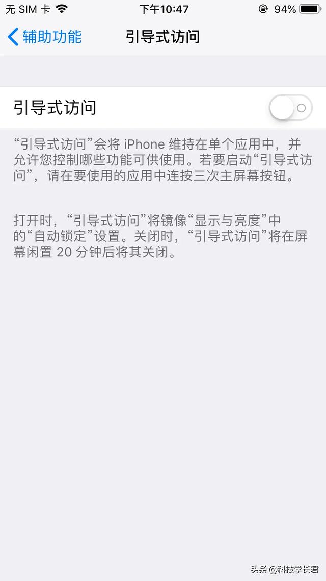 苹果手机的引导式访问功能,在设置,辅助功能中打开,平时在学校时候只需要连续按三下home键就可以打开。这个功能一般很少有人使用小编平时都是把这个功能关闭。好像苹果手机上有很多功能。我们很少会用到。但是他依然有这个功能。