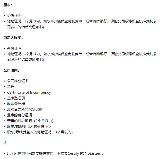 下面说说开立香港公司银行账户所需资料如下(仅供参考):