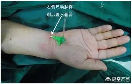 1,医生会在患者的右手动脉进行穿刺,放入鞘管,这是一切的基础。