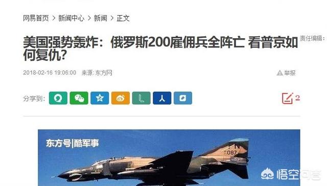 这就是国内很多军事自媒体的通病,开局一句话,剩下全靠编,为了抓眼球、搏热电,毫无下限。再加上国内整体上捧俄罗斯臭脚的习惯,这种以讹传讹非常广泛。倒是今年2月美国在幼发拉底河附近炸死数百俄罗斯雇佣兵的消息被国内众多军事媒体选择性遗漏,直到美国官方发布消息和俄罗斯死亡雇佣兵家属披露才被证实。