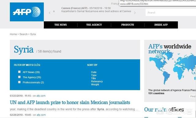 这是笔者在法新社官网的截图,由于笔者不懂法语,浏览的英语版本。笔者用网站的搜索栏搜“Syria”,并没有搜到海豹被炸的新闻。有懂法语的读者可以浏览一下法语版本看看有什么发现。