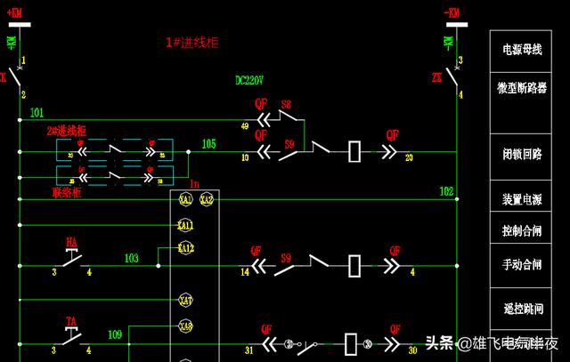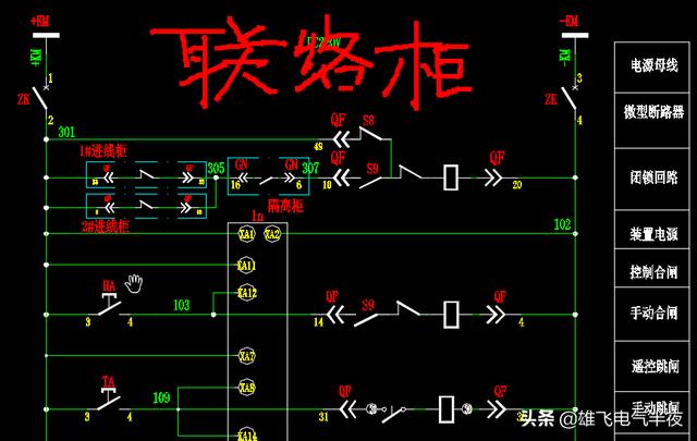 它的控制逻辑思维就是当1#和2#进线柜处于合闸状态时,母联柜断路器是处于分闸转态,因为有联锁,母联是不会合上闸的。想要合上联络开关,必须就具备一个条件,要么1#进线开关断开,要么2#开关断开。