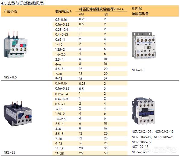 常见的热继电器有JR和Nxr型号,具体没有什么区别。购买继电器时一般会在说明书上显示各型号的额定电流。