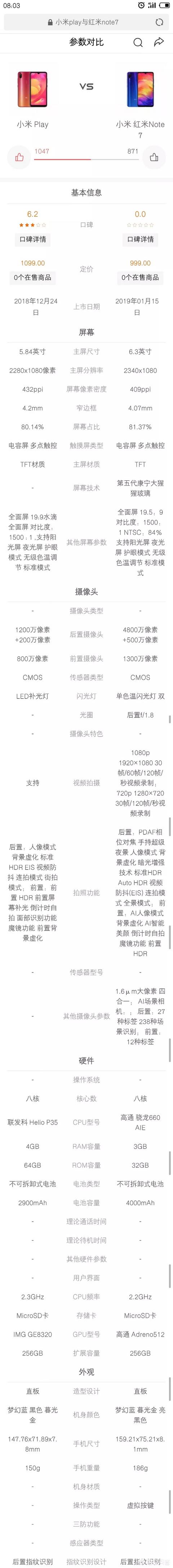最近想买部手机,小米Play和红米Note7哪个好用? 新农商网 更新于 2023-08-28 08:08:03 全部 1010 最近想买部手机,小米Play和红米Note7哪个好用? 回复 共2条回复 我来回复 清扬Tech 这个人很懒,什么都没有留下~ 评论 个人建议红米Note71.大电池续航能力更强2.4800万相机拍照能力更强3.骁龙660比p35性能上更强一点 赞同 2019-01-11 08:08:02 0条评论 无敌在哪里 这个人很懒,什么都没有留下~ 评论 当然note7.电池大拍照好,CPU也可以用两年左右, 赞同 2019-01-11 07:11:35 0条评论 请 登录 或者 注册 后回复。