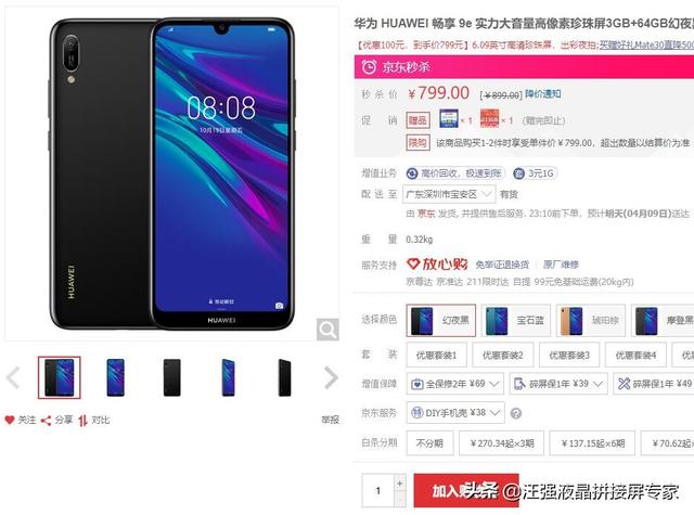 华为 HUAWEI 畅享 9e 实力大音量高像素珍珠屏3GB+64GB幻夜黑全网通版双4G手机目前在京东的价格是799元,配置上来说比红米稍微差点,价格还要高50元。