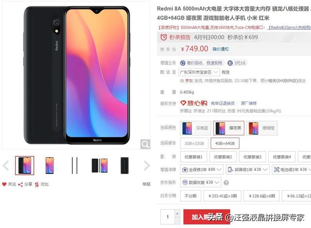 Redmi 8A 5000mAh大电量 大字体大音量大内存 骁龙八核处理器 AI人脸解锁 莱茵护眼全面屏 目前在京东上的价格是749元,配置这些作为备用机肯定是够了。