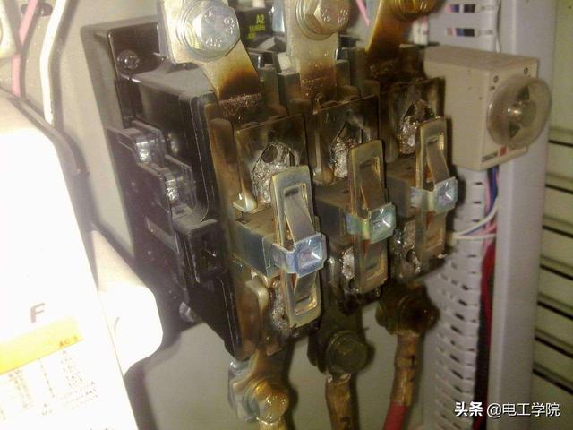 这一点和副题的描述相吻合,在接触器触头烧毛的时候,表面会出现凹凸不平的接触点,使触头接触面积不够,达不到接触器额定载流量,在电机起动的时候,就会出现“打火”的现象,久而久之,导致接触器被烧而无法使用。另外,接触器各个触头行程不一致,也会出现严重的“打火”现象。