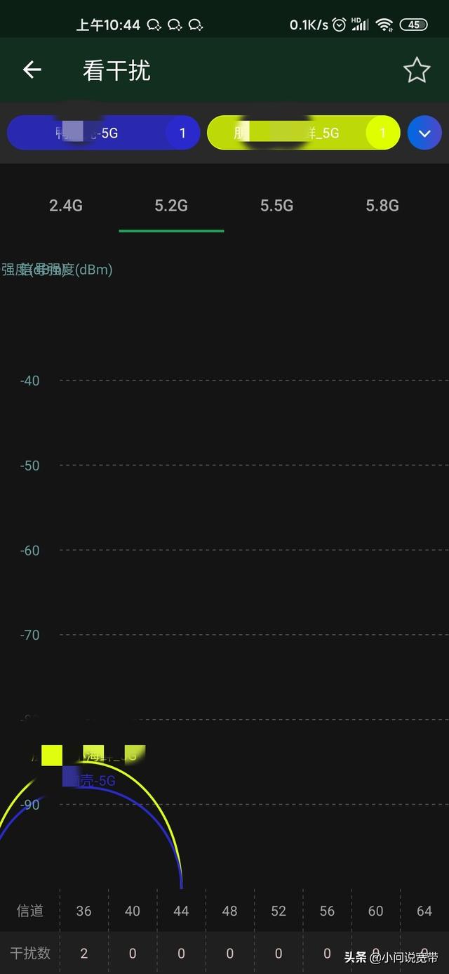 再看看在5GHz频段下,两格信号连MIMO都没法有了,直接是2.4GHz的带宽,满格就正常2×2 MIMO的带宽。