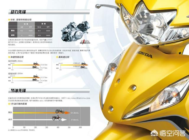 发动机运用了大量的进口配件。 车辆做工精致,用料充足,车辆稳定耐操。3.7升油箱,续航也可达200km。并且有点烟器接口配备。综合性能很强。是泰国人最喜欢的弯梁车。2.新大洲本田 威武110S/T 国四新款