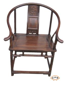 圈椅的椅圈与交椅的椅圈完全相同,交椅以其面下特点命名,圈椅则以面上特点命名。严格说来,交椅应属圈椅的一种,由于圈椅的出现晚于一般交椅,故列于后。圈椅是由交椅演变而来的。交椅的椅圈自搭脑部位伸向两侧,然后又向前顺势而下,尽端形成扶手。人在就座时,两手、两肘、两臂一并得到支撑,很舒适,故颇受人们喜爱,逐渐发展为专在室内使用的坐椅。由于在室内陈设相对稳定,无须使用交叉腿,故而采用四足,以木板作面,和一般椅子的坐面无大区别。只是椅的上部仍保留交椅的形式。在厅堂陈设及使用中大多成对,单独使用的人家不多。圈椅的椅圈多用弧形圆材攒接,搭脑处稍粗,自搭脑向两端渐次收细。为与椅圈形成和谐的效果,这类椅子的下部腿足和面上立柱也采用光素圆材,只在正面牙板正中和背板正中点缀一组浮浅简单的花纹。明代晚期,又出现一种坐下采用鼓腿彭牙带托泥的圈椅。尽管造型富于变化,然而四根立柱并非与腿足一木联作,而系另安,这样势必影响椅圈的牢固性。明代圈椅的椅式极受世人推崇,以致当时人们把圈椅亦称为“太师椅”。