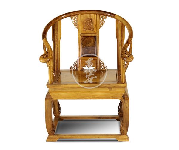 圈椅圆婉柔和,极为美观,算得上是椅中贵族。图中所示的金丝楠皇宫椅椅,就是清朝宫廷在圈椅的基础上进行改良后形成的精品。