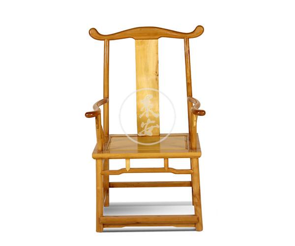 官帽椅是依其造型酷似古代官员的帽子而得名。官帽椅又分为南官帽椅和四出头式官帽椅。南官帽椅的造型特点是在椅背立柱与搭脑的衔接处做出圆角。作法是由立柱作榫头,搭脑两端的下面作榫窝,压在立柱上。椅面两侧的扶手也采用同样作法。背板作出“S”形曲线,一般用一块整板做成。明末清初出现木框镶板作法,由于木框带弯,板心多由几块拼接,中间装潢枨。面下由牙板与四腿支撑坐面。正面牙由中间向两边开门形门牙。这种椅型在南方使用较多。四出头式官帽椅与南官帽椅的不同之处是在椅背搭脑和扶手的拐角处不是做成软圆角,而是在通过立柱后继续向前探出,尽端微向外撇,并削出圆润的圆头。这种椅子也多用黄花梨木制成。背板全用整块木板刮磨成“S”形曲背。大方的造型和清晰美观的木质纹理,形成秀美高雅的风格与意趣。玫瑰式椅实际上是南官帽椅的一种。宋代名画中时有所见。明代这种椅子的使用逐渐增多。它的椅背通常低于其它各式椅子,和扶手的高度相差无几。背靠窗台平设数椅不至高出窗台,配合桌案陈设时又不高过桌面。由于这些特点,使并不十分适用的玫瑰椅深受人们喜爱。