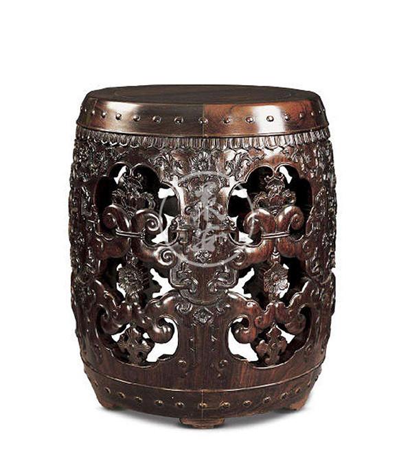 在明至清前期的坐墩上,大多保留着藤墩和木腔鼓的痕迹。但是到清中期和晚期,在绣墩上往往难于再找到木腔鼓的痕迹了。