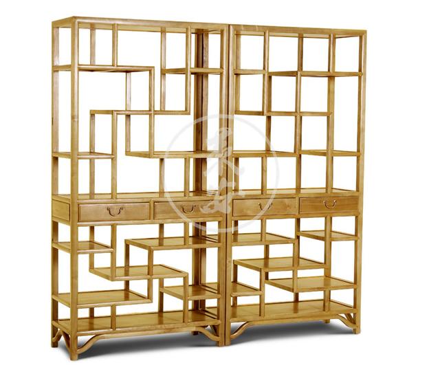 最基本的架格构造是四根立木为四个支撑,上架木板将空间分隔成若干层。不过常见的架格多是加设抽屉,并在架格的后部以及左右两侧设挡板或花格栏。当然还有下图这样的,由金丝楠木制成的架格,其用途是为了放置珍贵的图书或文玩。