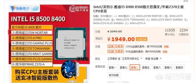 CPU:某宝8400板U套装 价格1949