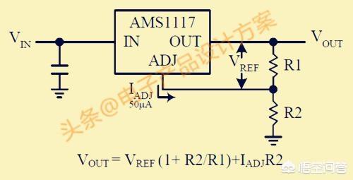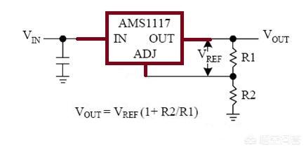 AMS1117是最常见的LDO,输出电流可以达到800mA,可以满足大多数的应用场合。只要通过电阻分压设置反馈电压就可以得出需要的输出电压了。